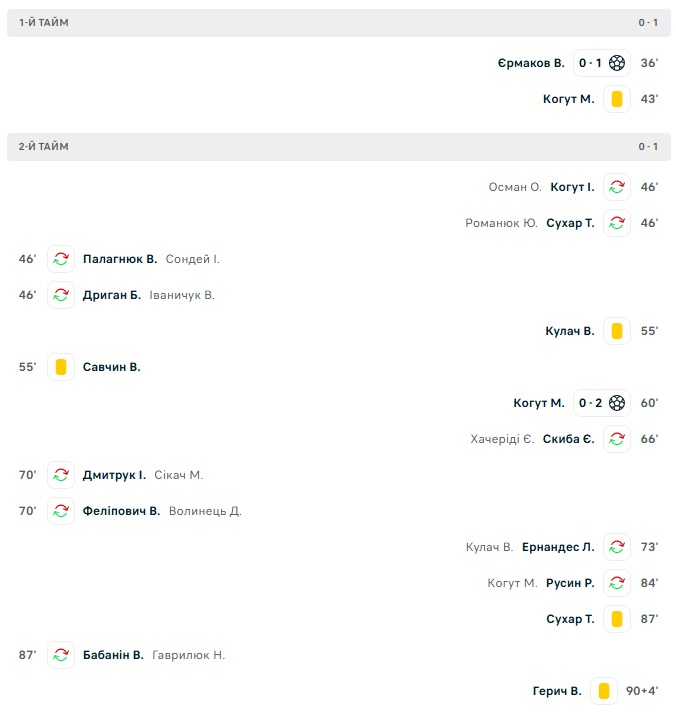 Єдиний гол у матчі на 67 хвилині забив Андрій Хома - 1:0. Ця перемога перервала серію з 7 матчів без перемог.