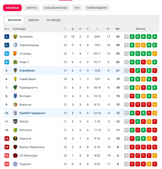 Відбулись матчі 12 туру у Першій лізі з футболу.