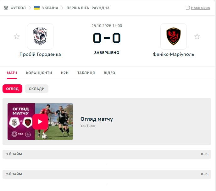 Городенківський «Пробій» на своєму полі зіграв унічию з ФК «Фенікс-Маріуполь» - 0:0.