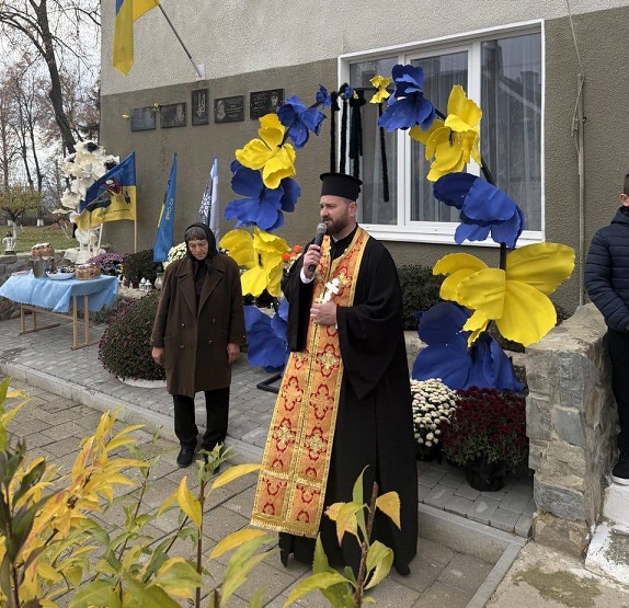 Отець Іван Лазаренко провів освячення дошок та спільно з присутніми помолився за всіх українських героїв, чиє життя відібрала війна.