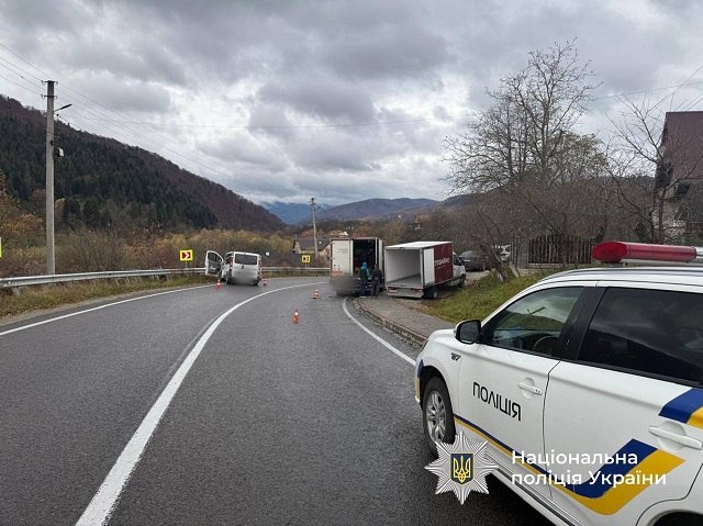 «Повідомлення про ДТП надійшло до поліції близько 7:17. Попередньо встановлено, що водій автомобіля Renault Trafic, 1984 року народження, мешканець Закарпаття, рухаючись заокругленою ділянкою дороги, виїхав на смугу зустрічного руху, де допустив зіткнення з автомобілем Mercedes-Benz, за кермом якого перебував житель Коломиї. Унаслідок ДТП пасажирка Renault, 1976 року народження, отримала тілесні ушкодження. Вона доставлена до місцевої лікарні», - повідомили у поліції.