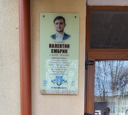 14 листопада на фасаді ІІ корпусу ліцею імені Ольги Басараб відкрили пам’ятну дошку полеглому Герою Валентину Ємбрику.