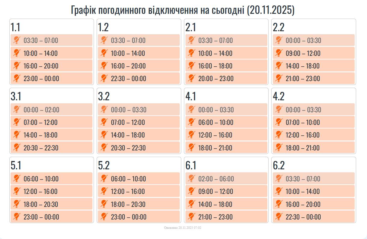 Новини Суспільство Опубліковано: 20.11.2025 о 10:04 «Прикарпаттяобленерго» оновило графіки відключень електропостачання на 20 листопада АТ «Прикарпаттяобленерго» оприлюднило оновлені графіки відключень електроенергії на 20 листопада 2025. Сподобалась публікація? Надіслати у Viber Надіслати в Telegram Поширити на Facebook