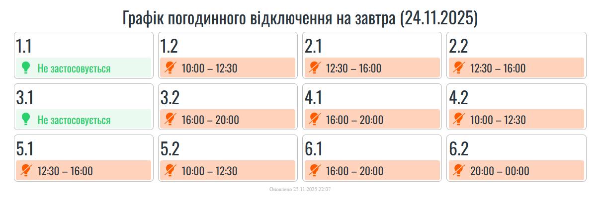24 листопада, на Прикарпатті протягом доби будуть діяти ГПВ. Про це повідомили в АТ «»Прикарпаттяобленерго.