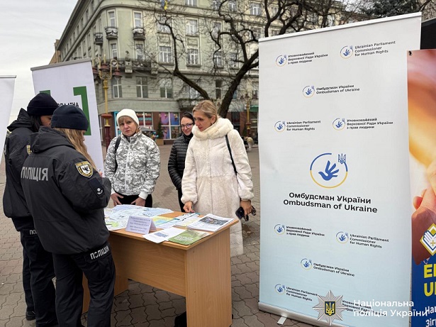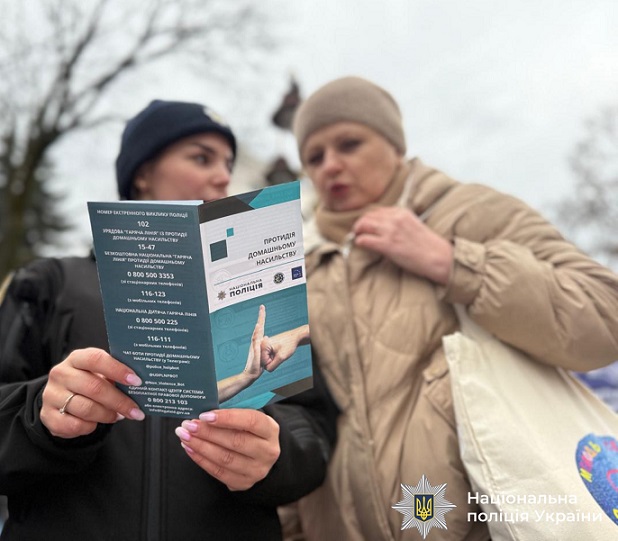 Правоохоронці роздавали інформаційні листівки з порадами та телефонами служб підтримки, спілкувалися з перехожими, відповідали на актуальні запитання: куди дзвонити, якщо боїшся; як захистити дитину; що робити, якщо насильство відбувається поруч?
