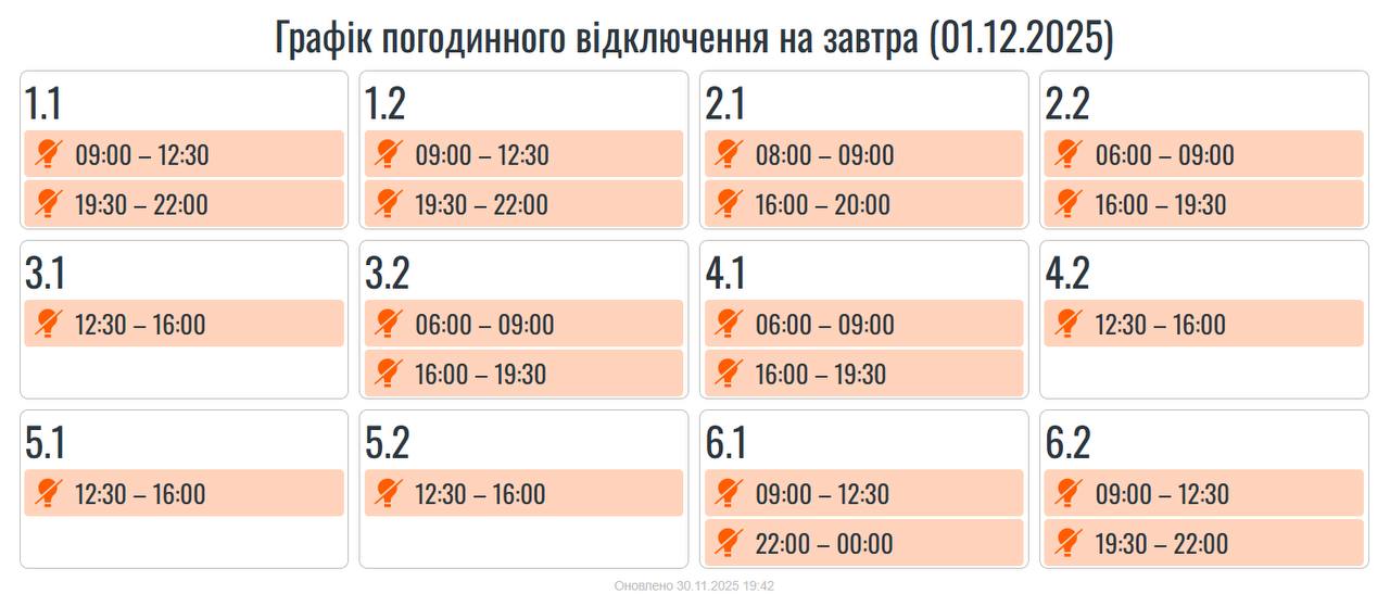1 грудня, на Прикарпатті будуть застосовуватися графіки погодинних вимкнень. Про це повідомили в АТ «Прикарпаттяобленерго».