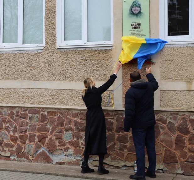 На фасаді Ліцею №20 Івано-Франківської міської ради відкрили та освятили памʼятні дошки двом загиблим випускникам – Андрію Липовецькому та Андрію Попику, які мужньо боронили Україну.