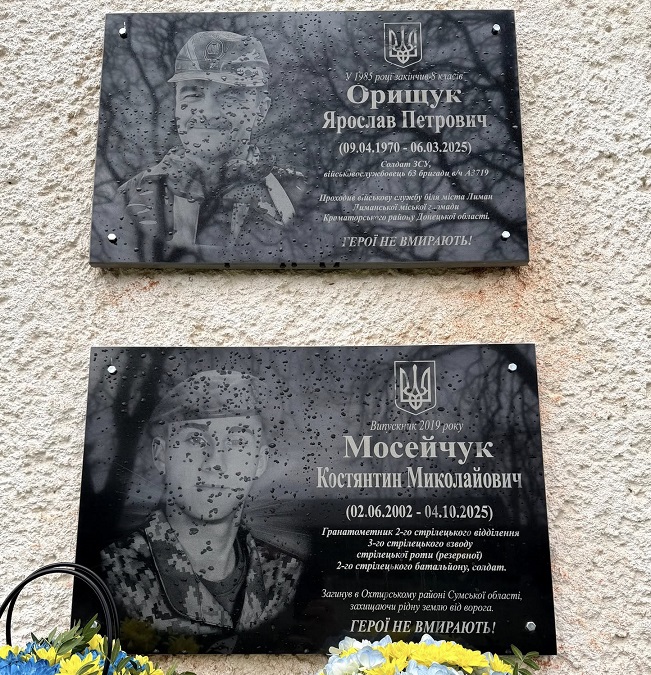 На честь Костянтина Мосейчука та Ярослава Орищука на фасаді ліцею встановили меморіальні дошки загиблим військовослужбовцям.