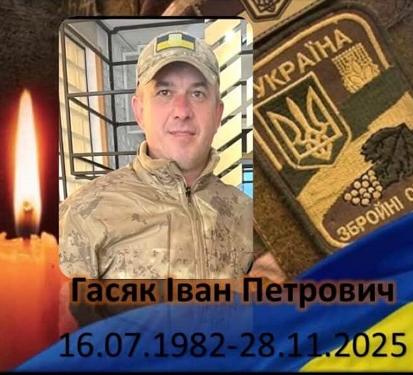 Проведуть заходи військового поховального ритуалу щодо солдата Гасяка Івана Петровича (16.07.1982-28.11.2025). Про це повідомили в «Міській ритуальній службі».
