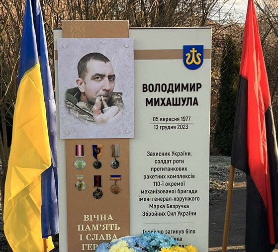 13 грудня 2023 року солдат Михашула Володимир Зіновійович, під час виконання службового обов’язку, загинув внаслідок атаки ворожого FPV-дрона поблизу Авдіївки Покровського району Донецької області.