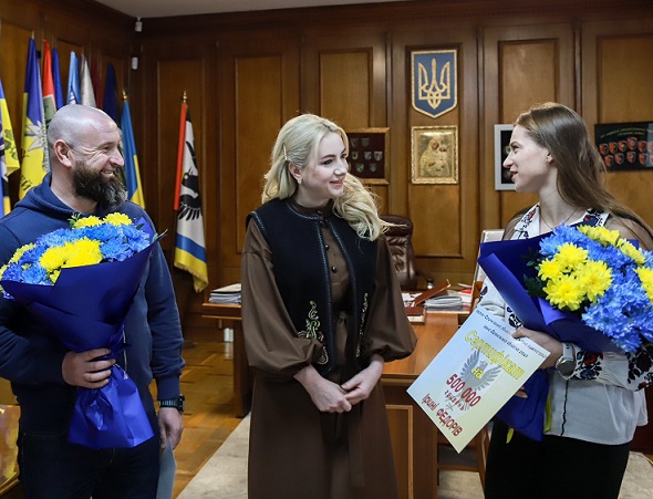 Голова Івано-Франківської ОВА Світлана Онищук зустрілася з чемпіонкою світу з веслування на байдарках і каное Іриною Федорів та її тренером Миколою Перогом та вручила їм грошові сертифікати на покращення житлово-побутових умов — по 500 тисяч гривень кожному.
