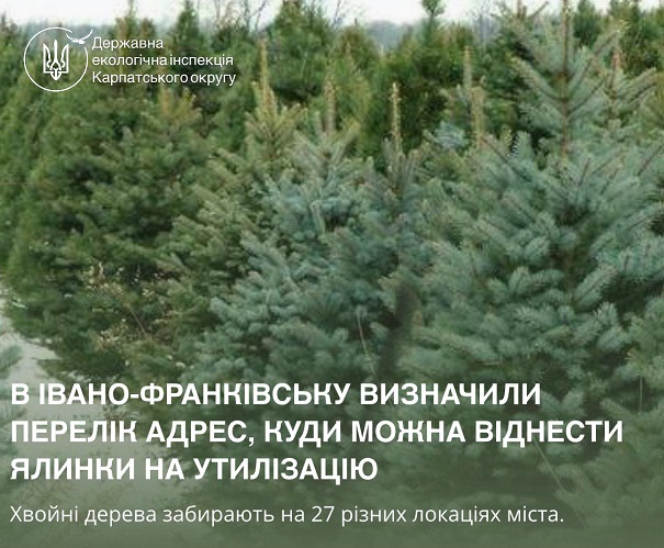 В Івано-Франківську визначили перелік адрес, куди можна віднести ялинки на утилізацію. Цьогоріч місто поділили на 27 секторів, у межах яких облаштували 46 контейнерних майданчиків для збору живих новорічних дерев.