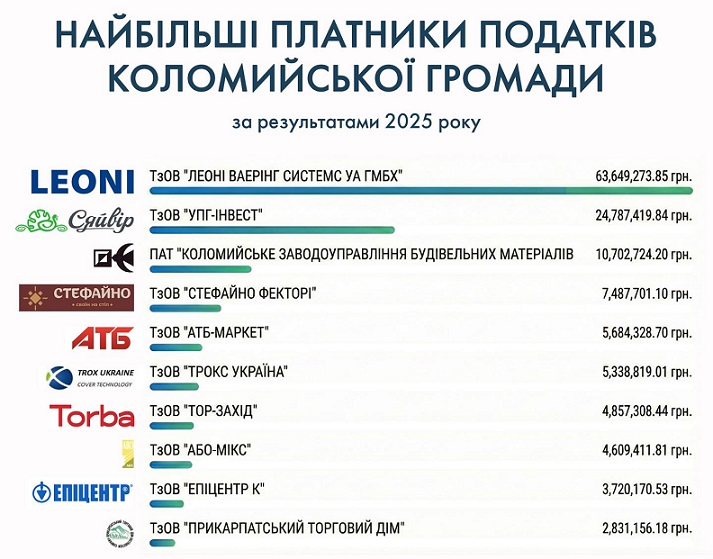 У Коломийській громаді відзначили 10 організацій, які стали найбільшими платникам податків у 2025 році.