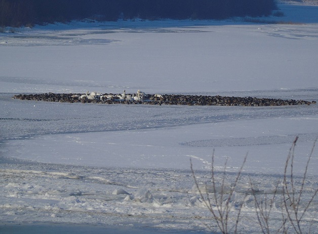 Дністер витримав натиски морозів, що приніс нам азійський антициклон, зберігши незамерзлими чималі ділянки свого плеса. ❄️Ці клапті вільної води, розділені кілометрами вкритого кригою русла ріки, стали своєрідною оазою життя серед крижаної пустелі, забезпечивши їжею та прихистком тисячі особин водоплавних птахів.