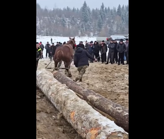 «Поліцейські у соціальних мережах виявили відео, на якому зафіксовано змагання коней-ваговозів. На кадрах видно, як тварини на швидкість тягнуть важкі колоди дерев, а поруч із ними люди розмахують батогом та б’ють ним по землі», - повідомили у поліції.