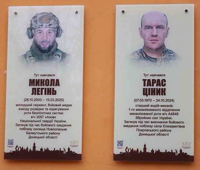 6 лютого на фасаді Ліцей 7 Івано-Франківської міської ради відкрили та освятили анотаційні дошки на честь загиблих бійців — Тараса Ціника та Миколи Легіня.