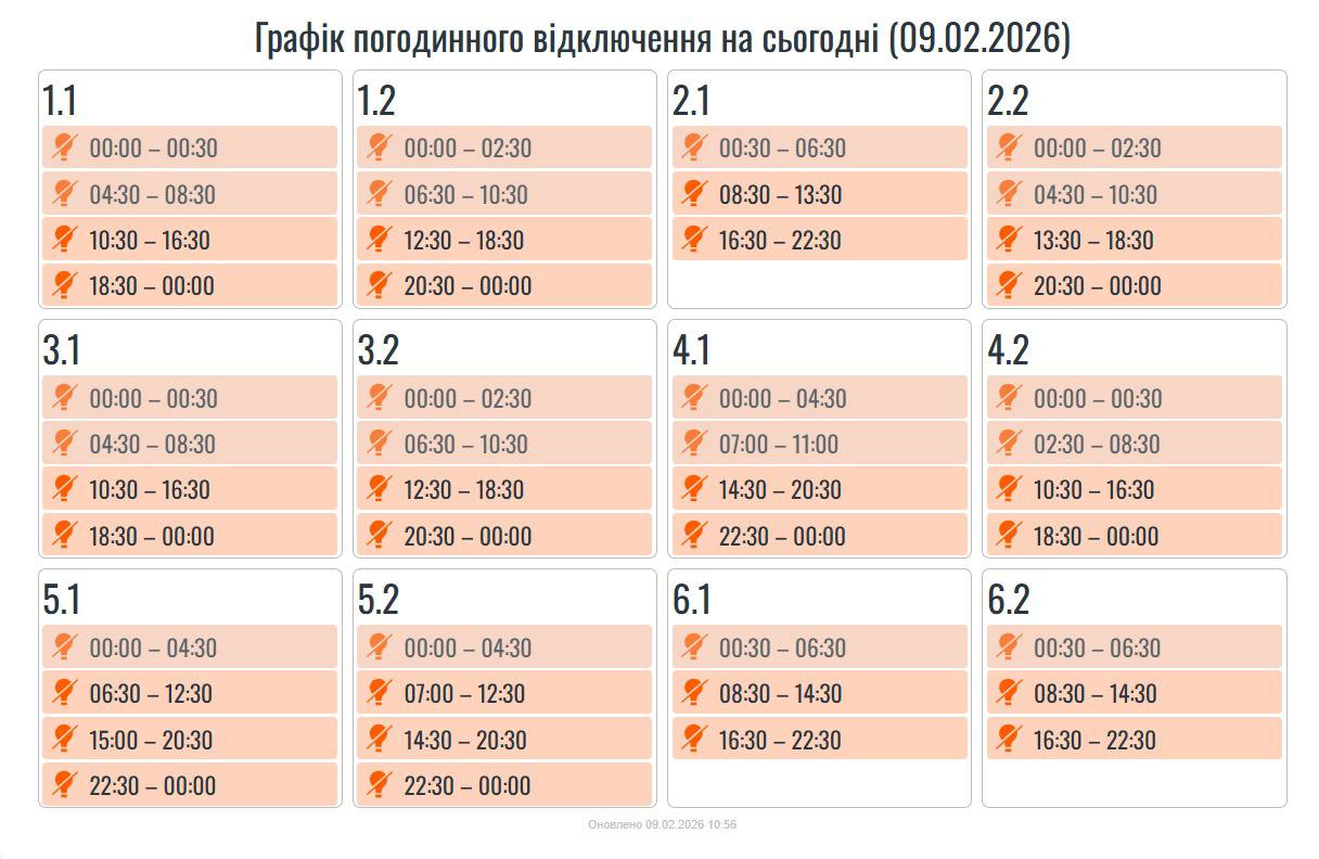 9 лютого, в усіх регіонах України, в тому числі на Прикарпатті, будуть застосовуватися графіки погодинних вимкнень. Про це повідомили в АТ «Прикарпаттяобленерго».