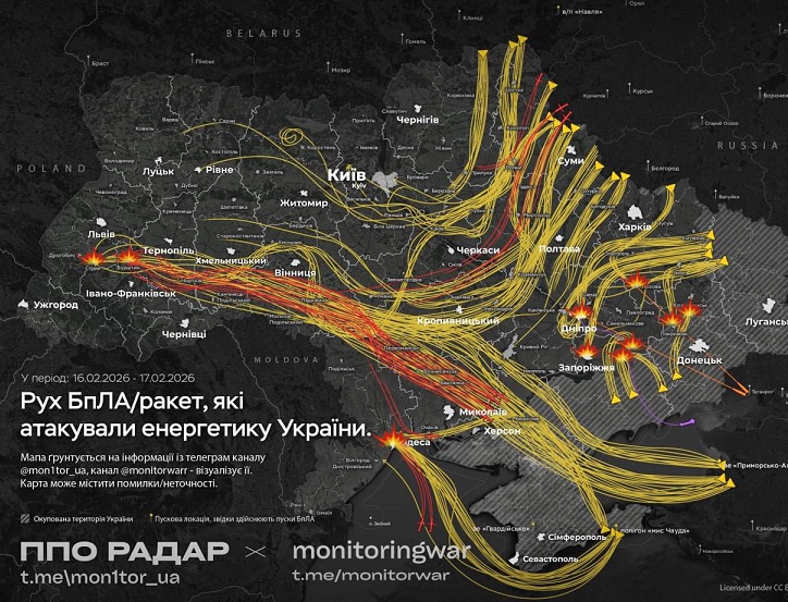 У ніч на 17 лютого ворог атакував крилатими ракетами місто Бурштин. Про це повідомляють моніторингові канали та мешканці міста.