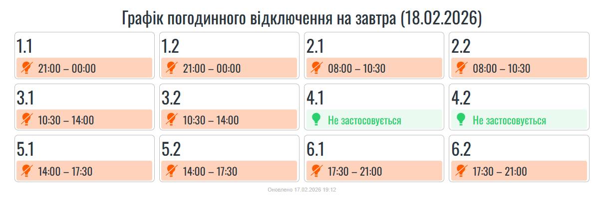 18 лютого, в усіх регіонах України, в тому числі на Прикарпатті, будуть застосовуватися графіки погодинних вимкнень. Про це повідомили в АТ «Прикарпаттяобленерго».