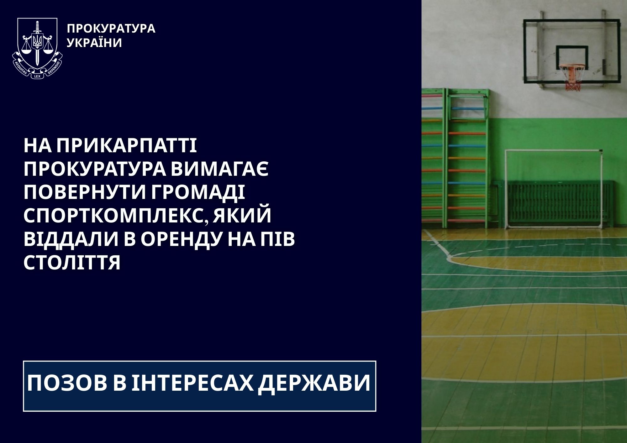 Прокурори Косівської окружної прокуратури звернулися до Господарського суду Івано-Франківської області з позовом про повернення у власність Верховинської селищної ради частини приміщення сільського спортивного комплексу в селі Ільці. Комунальний об’єкт було незаконно передано в оренду місцевій підприємиці на 49 років.
