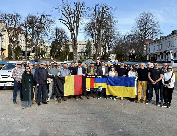 Калуська громада зустріла волонтерський конвой із Бельгії у складі 24 людей на чолі з графом Рено де Кершовим та заступником міського голови міста-побратима Мерельбеке-Меле Лівеном Фоклкартом, які вчергове привезли допомогу для наших Захисників.