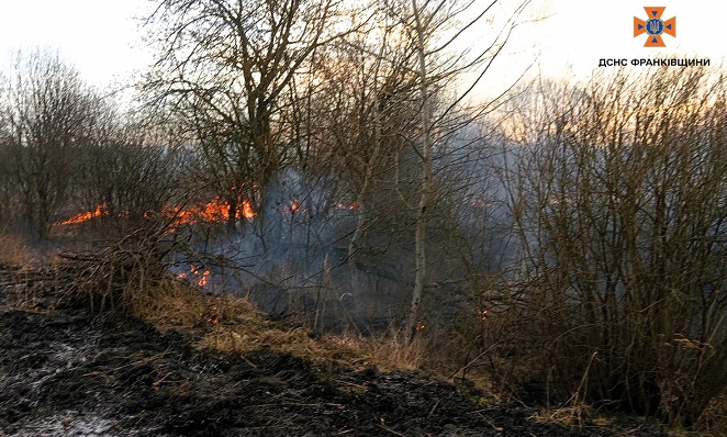 Впродовж доби на Прикарпатті зафіксовано 60 пожеж у природних екосистемах на площі 2,7 га.