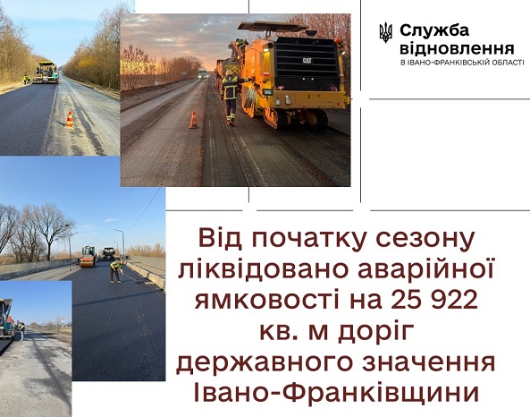 «Злагоджена робота підрядної організації, за координації Служби відновлення, дає результати. Завдяки організації процесу, яка дозволила пришвидшити темпи ліквідації аварійної ямковості, сподіваємося на ще кращі результати, – підсумовує керівник Служби відновлення Любомир Семанів. – Саме такі настанови маємо від Кабміну та Агентства відновлення”.