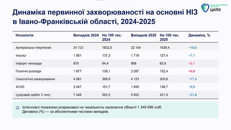 Івано-Франківський обласний центр контролю та профілактики хвороб повідомив про стан неінфекційних захворювань в Івано-Франківській області у 2025 році.