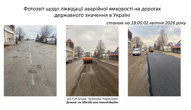 Станом на 2 квітня ліквідовано аварійної ямковості на 67,3 тисячі м2.