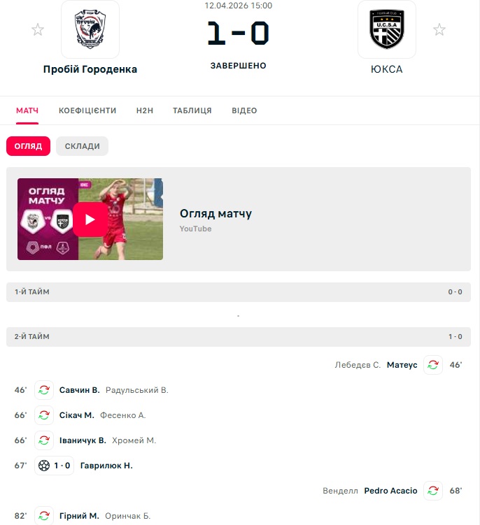 Городенківський «Пробій» на власному полі переміг ФК «ЮКСА» - 1:0.