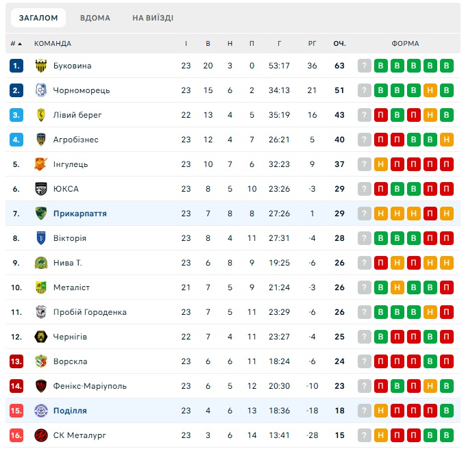 На вихідних відбулись матчі 23 туру Першої ліги з футболу.