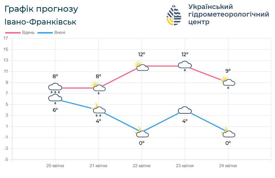 Івано-Франківський обласний центр з гідрометеорології оприлюднив прогноз погоди по Івано-Франківській області на 21-24 квітня.