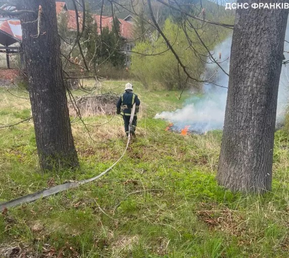 У селищі Ворохта Надвірнянського району виникла пожежа сухої трави, чагарників і хмизу поблизу лісу на площі 200 м².