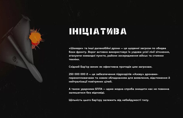 Проєкт «Східний Бар’єр» запустили, щоб закрити потребу в захисті на лінії фронту. Кампанія працює паралельно у двох напрямках.